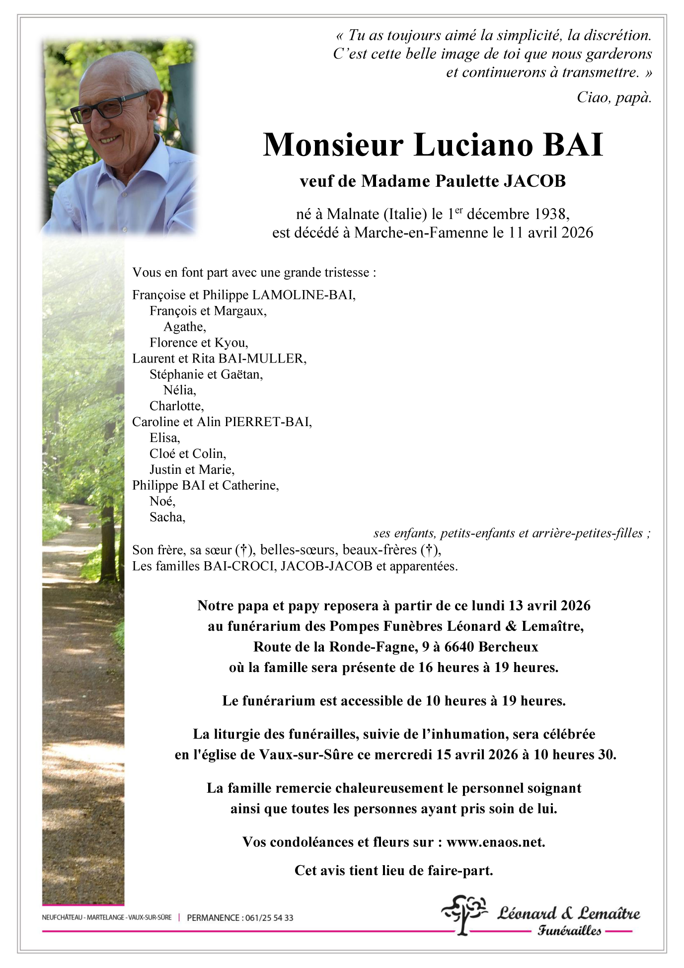 cimetière de Vaux-sur-Sure le mercredi 15 avril