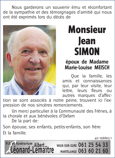 Décédé à Arlon (6700) le mercredi 22 octobre 2014 à l'âge de 83 ans