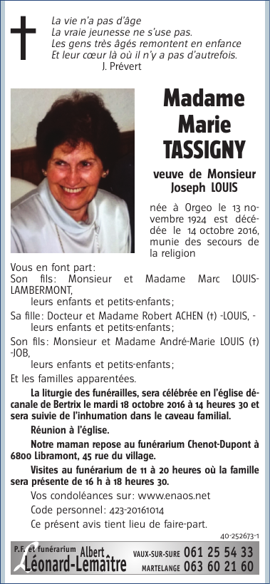 Madame Marie TASSIGNY