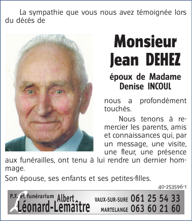 Décédé à Chenogne (6640) le vendredi 7 octobre 2016 à l'âge de 87 ans