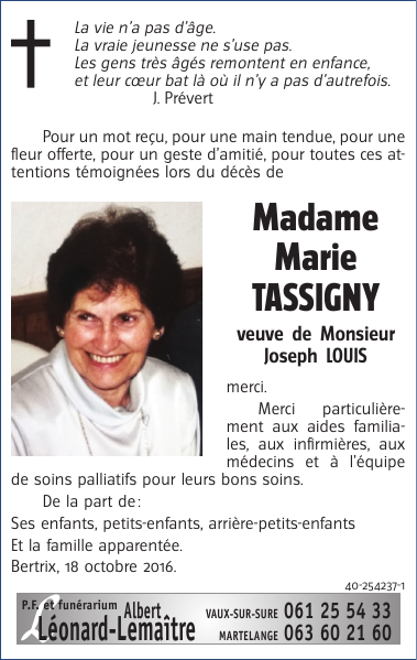 Décédée à Libramont-Chevigny (6800) le vendredi 14 octobre 2016 à l'âge de 91 ans