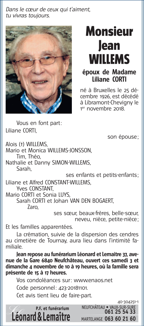 Décédé à Libramont-Chevigny (6800) le jeudi 1 novembre 2018 à l'âge de 91 ans