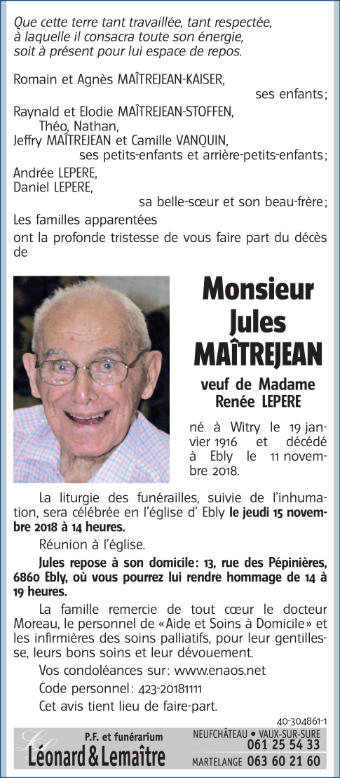Monsieur Jules MAITREJEAN