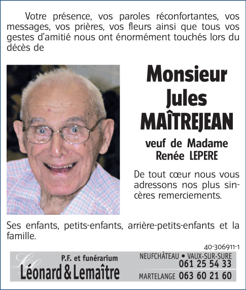 Né à Witry (6860) le mercredi 19 janvier 1916