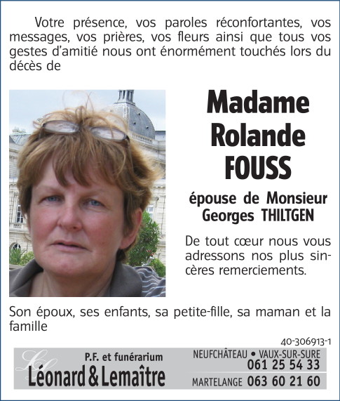 Née à Tontelange (6717) le mercredi 18 février 1953