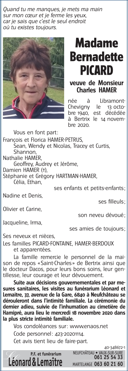 Décédé à Bertrix (6880) le samedi 14 novembre 2020 à l'âge de 80 ans