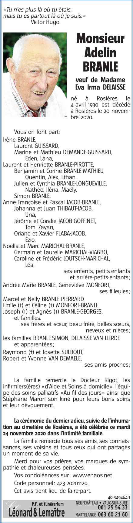 Monsieur Adelin BRANLE