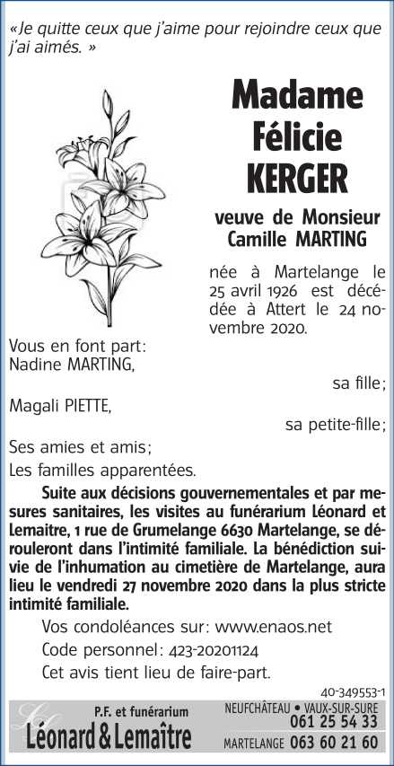 Madame Félicie KERGER