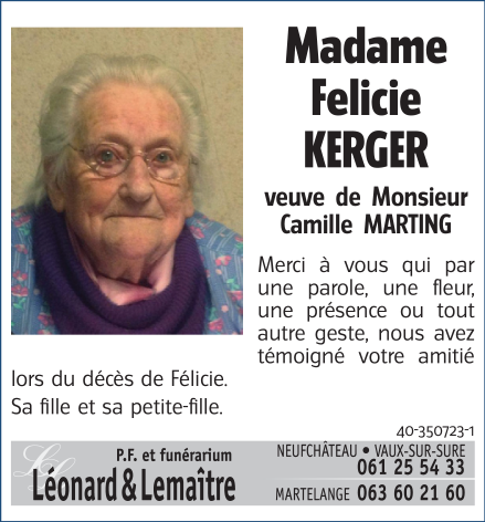Née à Martelange (6630) le dimanche 25 avril 1926
