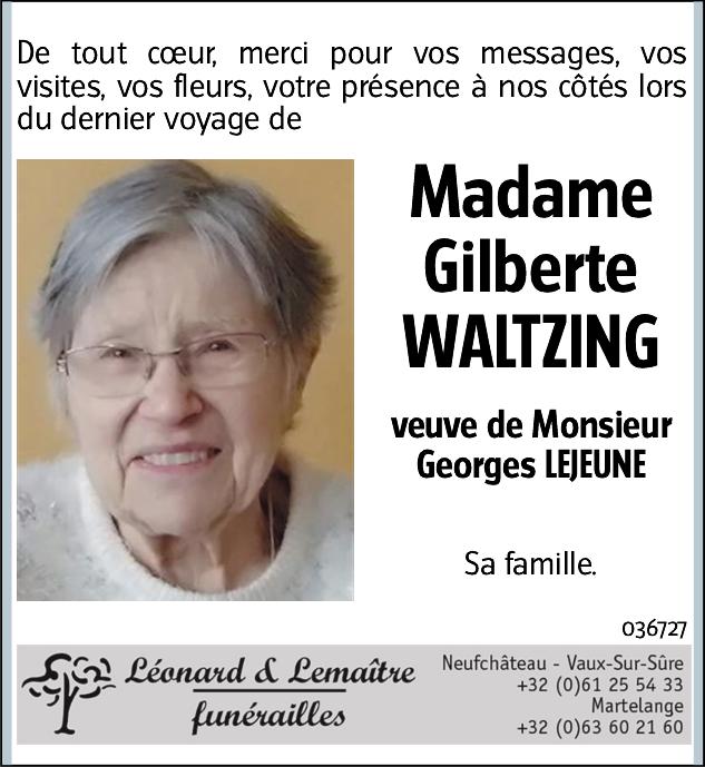 Décédée à Longlier (6840) le samedi 15 octobre 2022 à l'âge de 88 ans