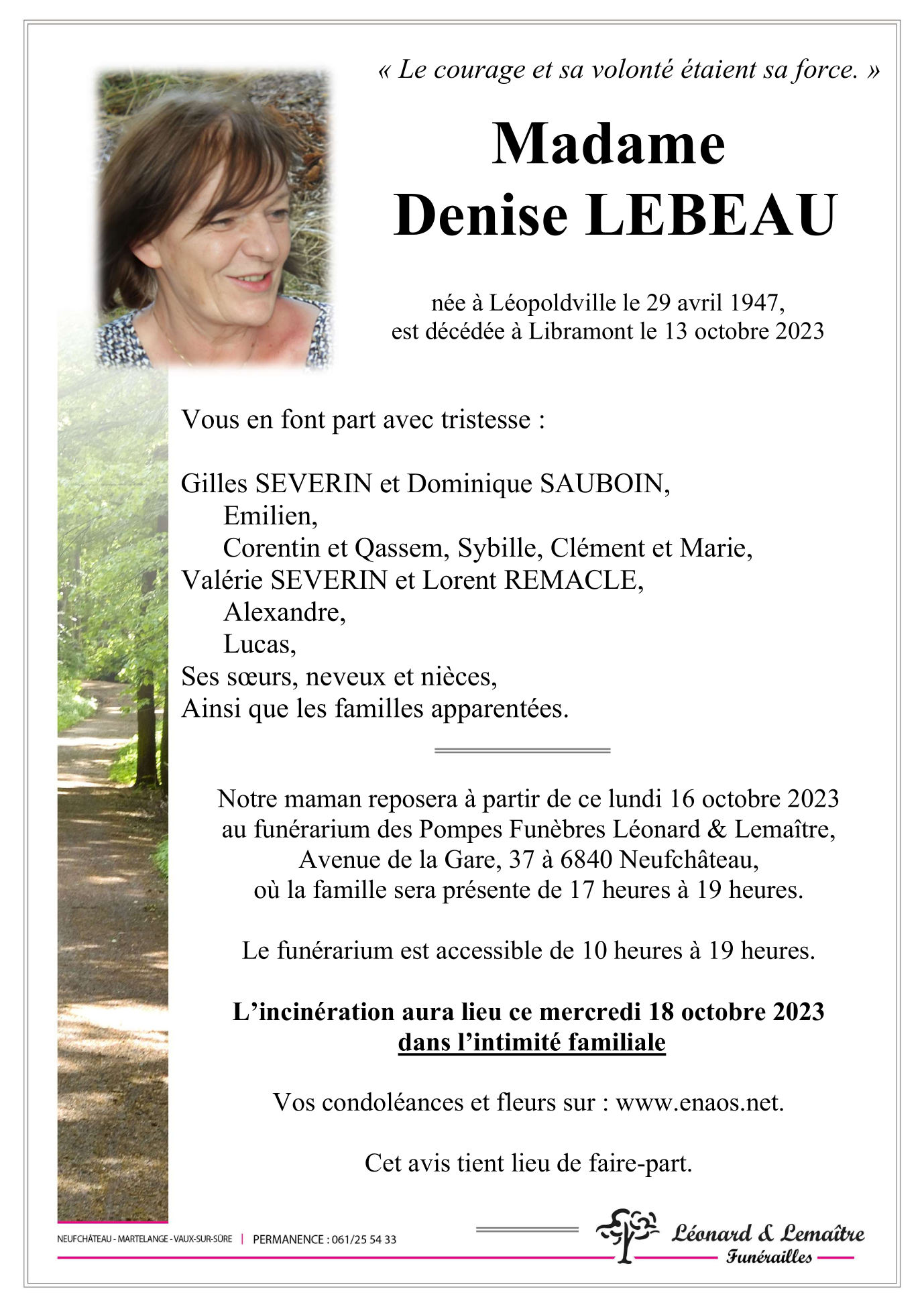 Madame Denise LEBEAU