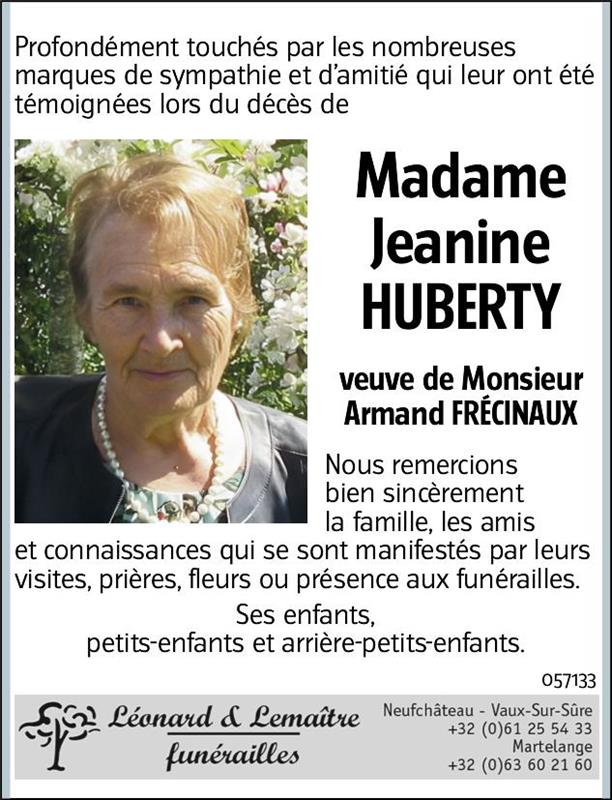 Décédée à Juseret (6640) le lundi 16 octobre 2023 à l'âge de 86 ans