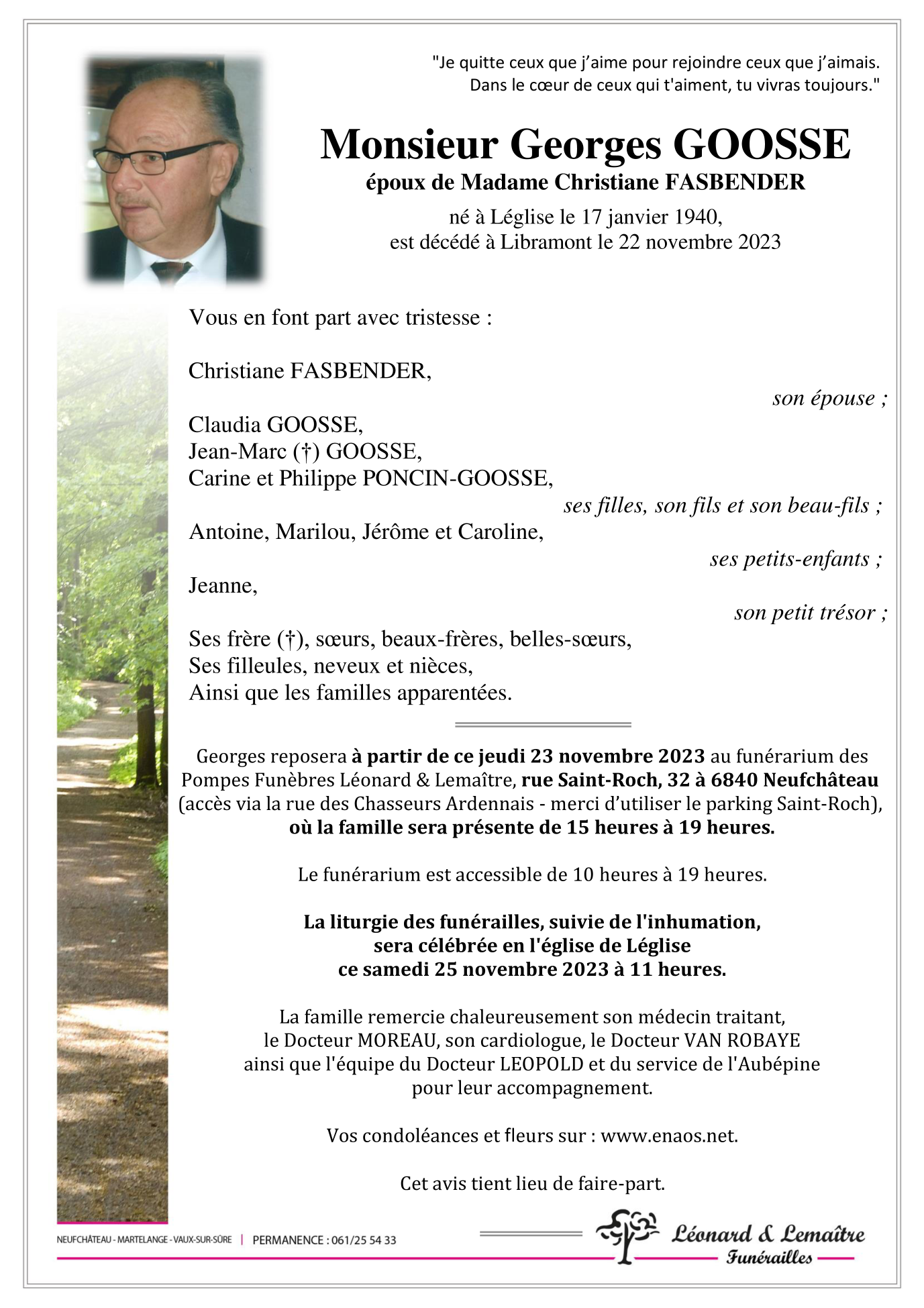 Décédé à Libramont-Chevigny (6800) le mercredi 22 novembre 2023 à l'âge de 83 ans