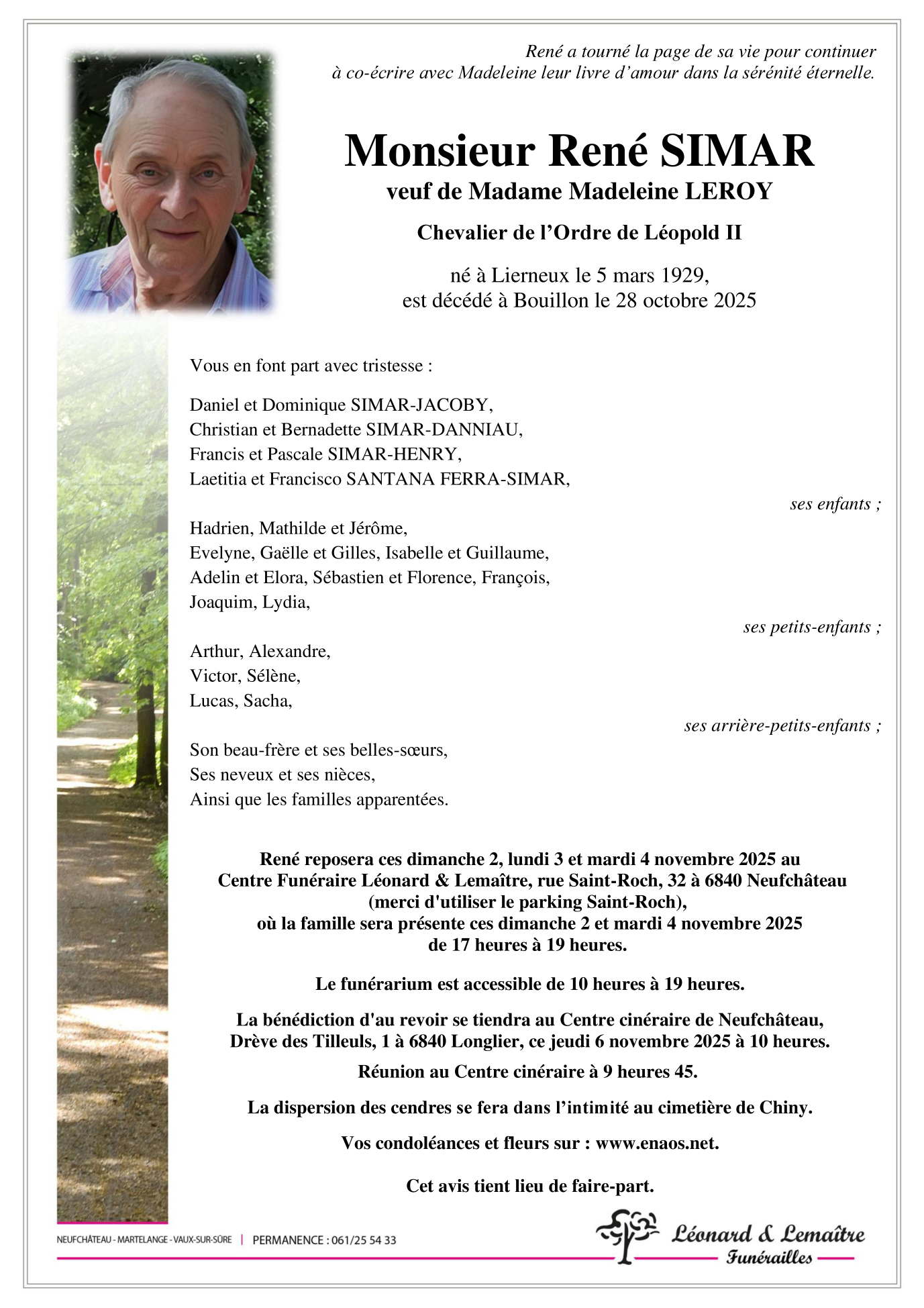Décédé à Bouillon (6830) le mardi 28 octobre 2025 à l'âge de 96 ans