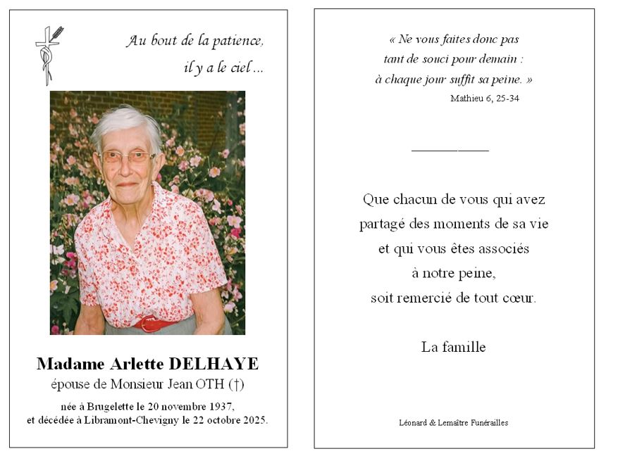 Décédée à Libramont-Chevigny (6800) le mercredi 22 octobre 2025 à l'âge de 87 ans