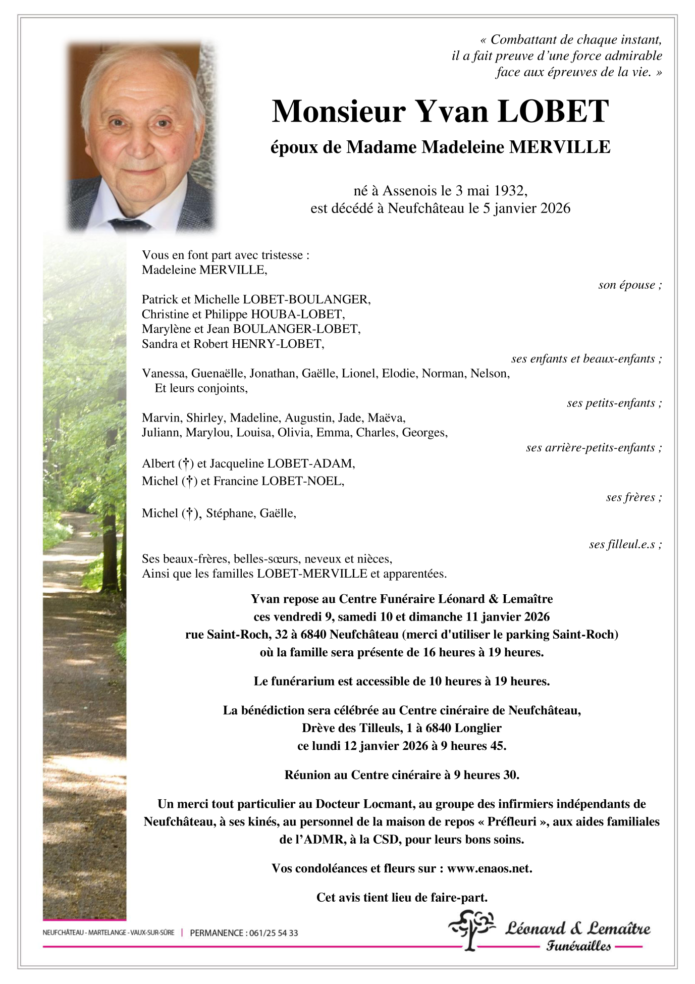 Décédé à Neufchâteau (6840) le lundi 5 janvier 2026 à l'âge de 93 ans