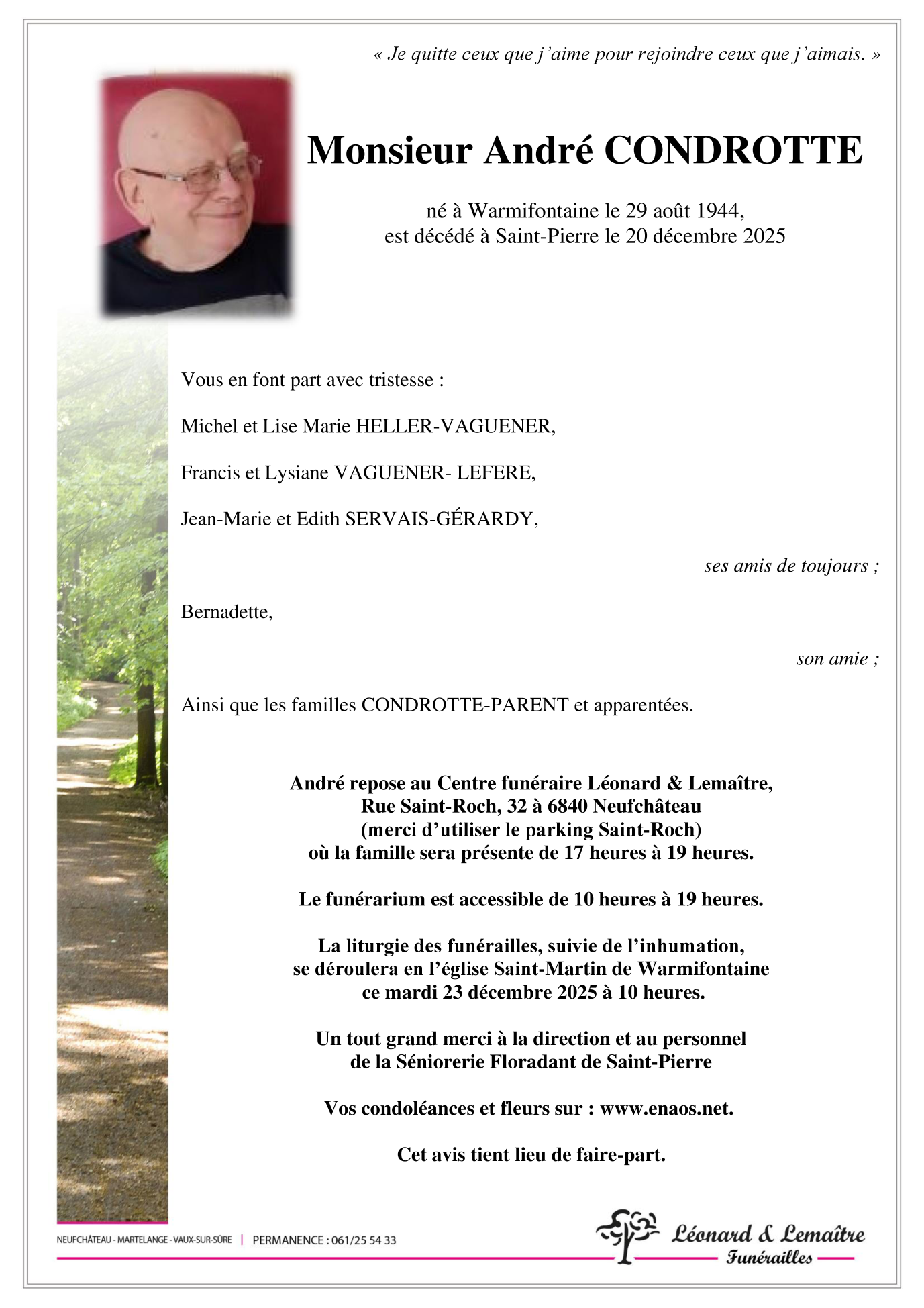 Né à Grapfontaine (6840) le mardi 29 août 1944