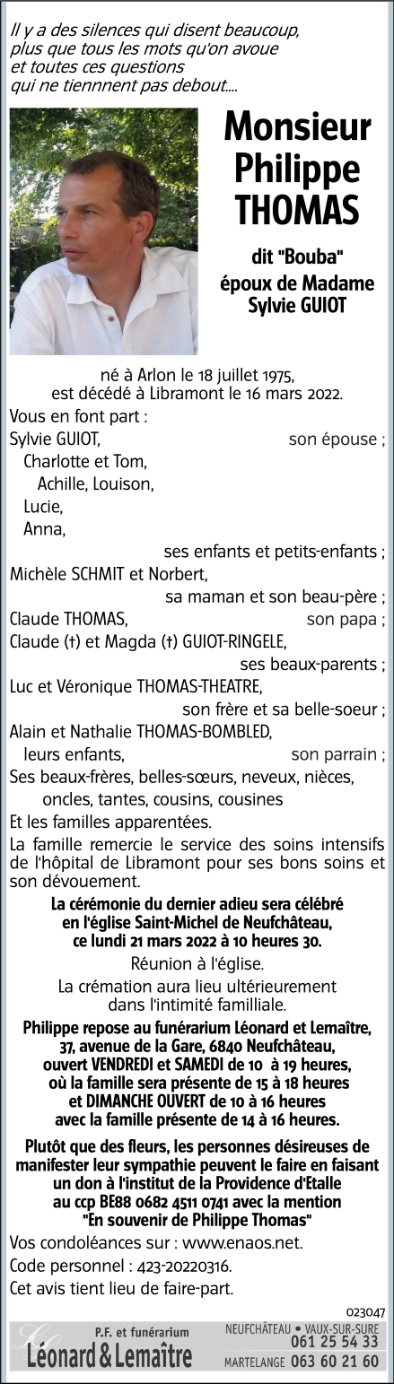 Décédé à Libramont-Chevigny (6800) le mercredi 16 mars 2022 à l'âge de 46 ans