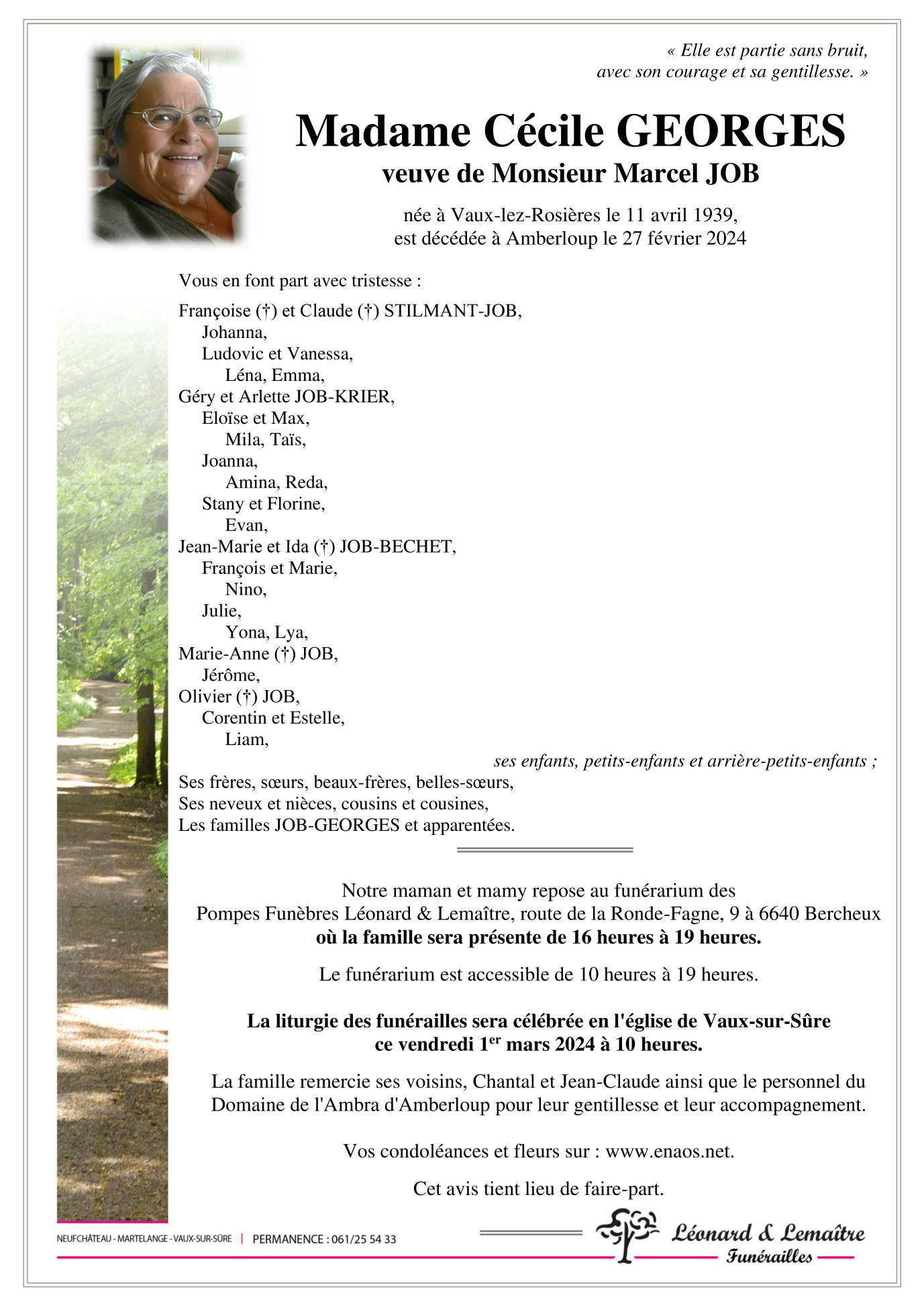 Funérailles Léonard - Lemaître