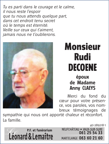 Décédé à Bastogne (6600) le jeudi 22 février 2018 à l'âge de 72 ans