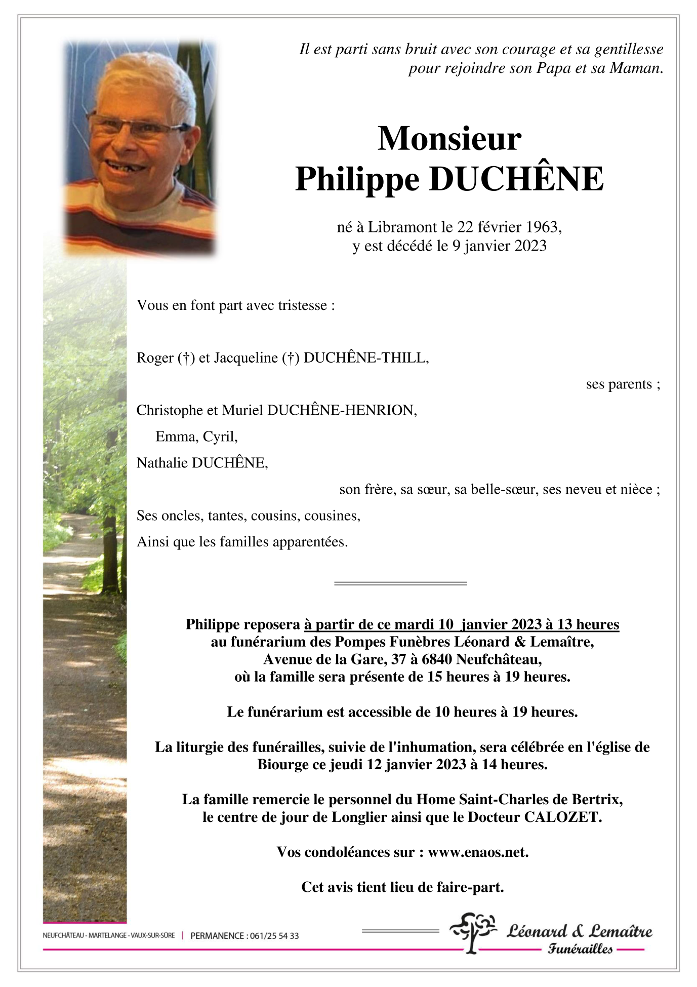 Décédé à Libramont-Chevigny (6800) le lundi 9 janvier 2023 à l'âge de 59 ans