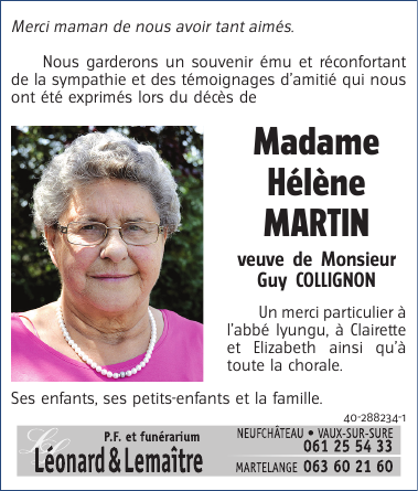 Décédée à Libramont (6800) le vendredi 23 février 2018 à l'âge de 80 ans