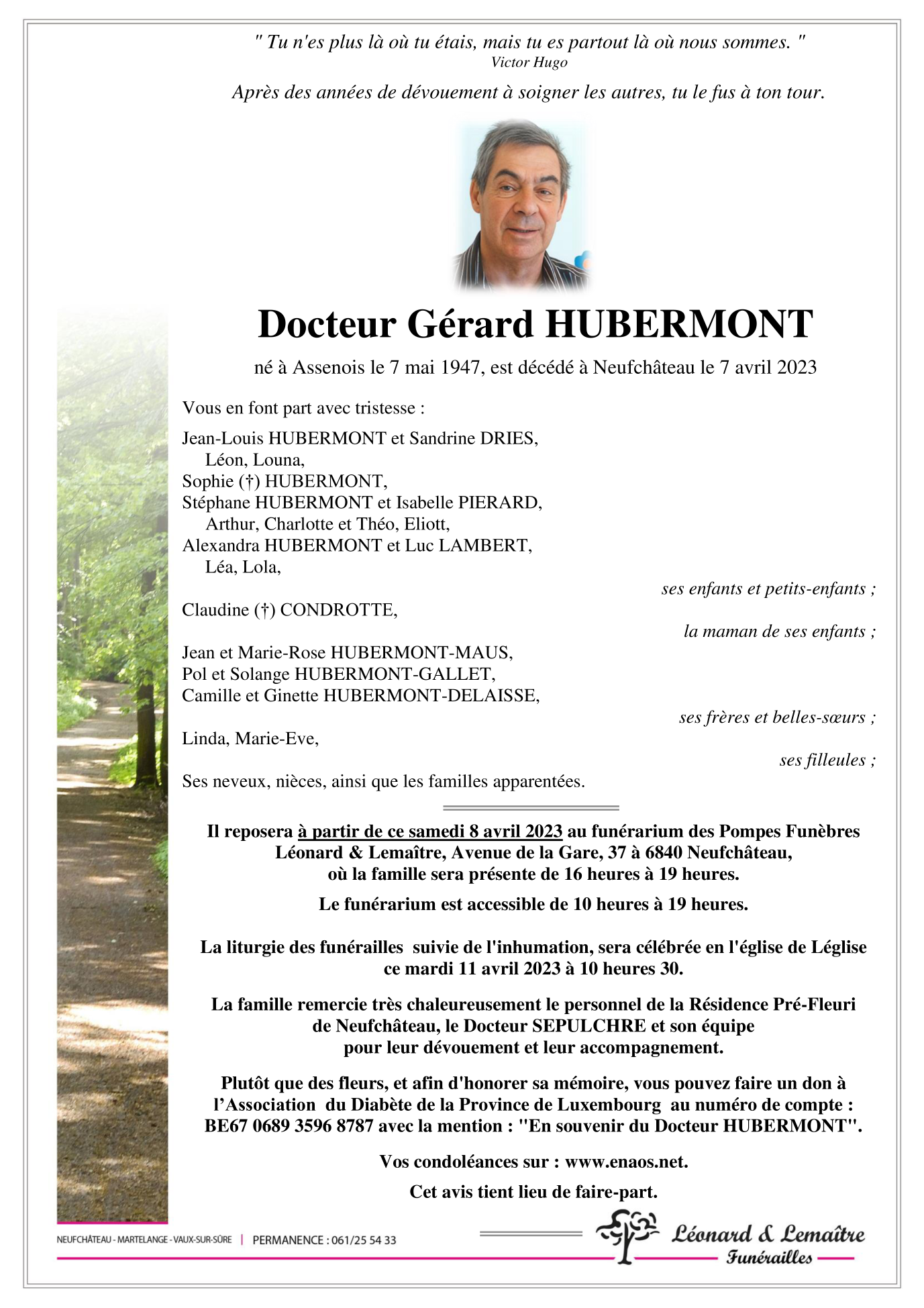 Décédé à Neufchâteau (6840) le vendredi 7 avril 2023 à l'âge de 75 ans