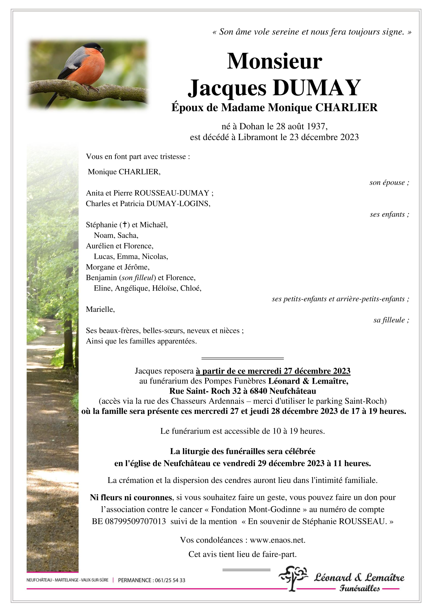 Décédé à Libramont-Chevigny (6800) le samedi 23 décembre 2023 à l'âge de 86 ans