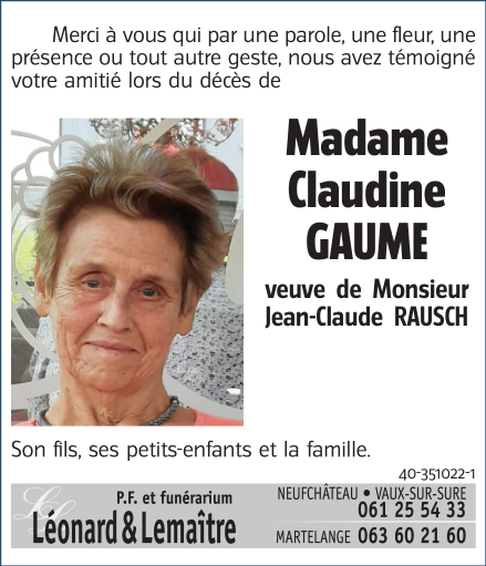 Veuf de Monsieur Jean-Claude RAUSCH