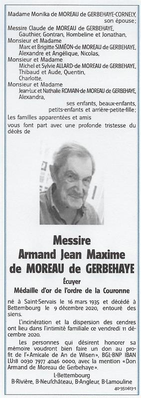 Messire Armand Jean Maxime de MOREAU de GERBEH