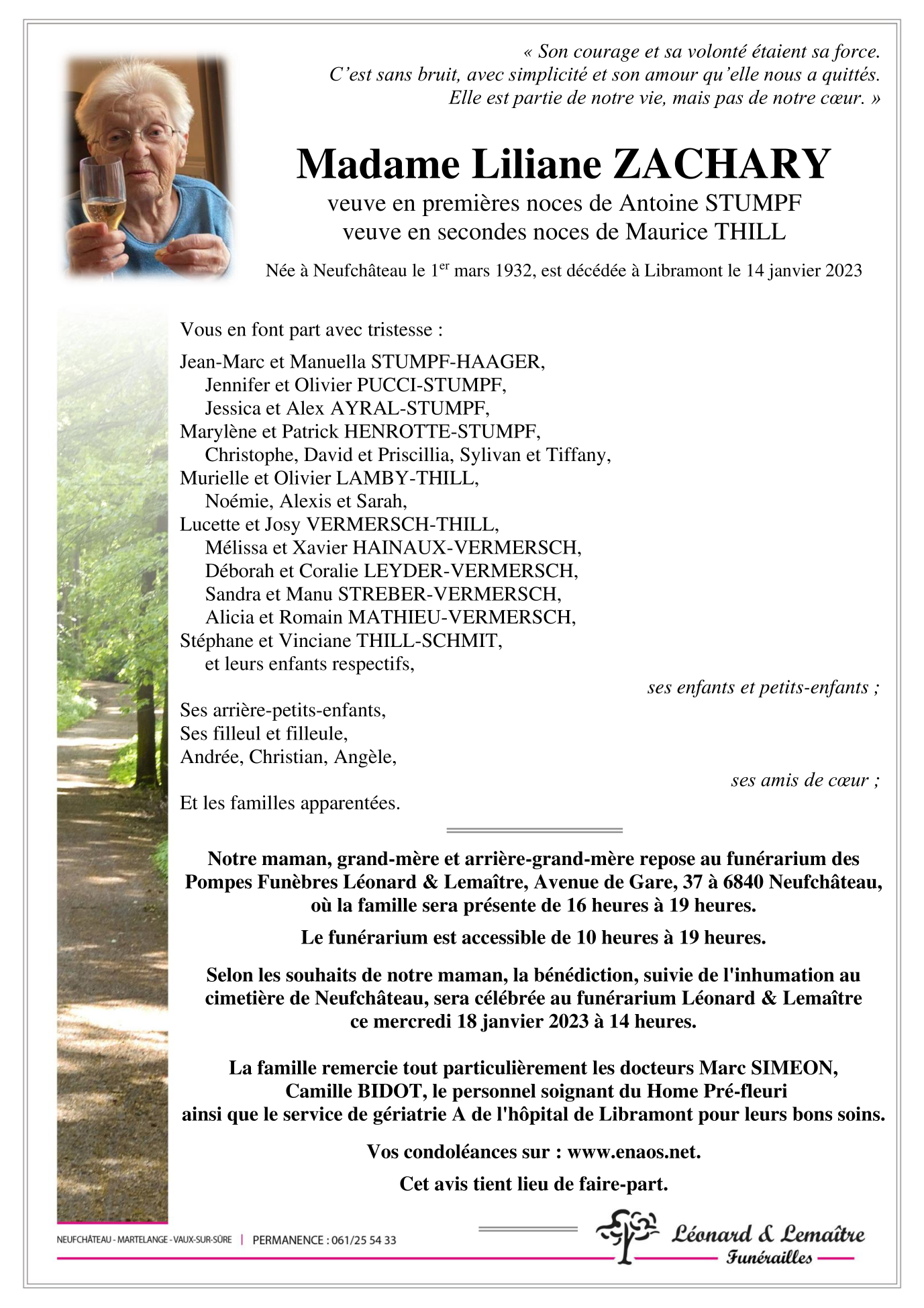 Décédée à Libramont-Chevigny (6800) le samedi 14 janvier 2023 à l'âge de 90 ans