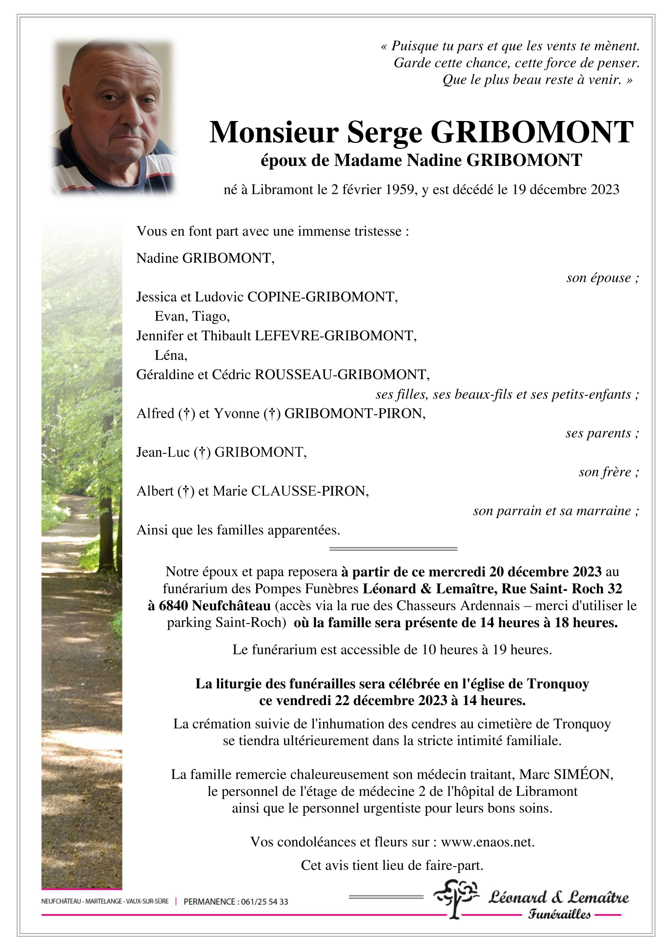 Décédé à Libramont-Chevigny (6800) le mardi 19 décembre 2023 à l'âge de 64 ans