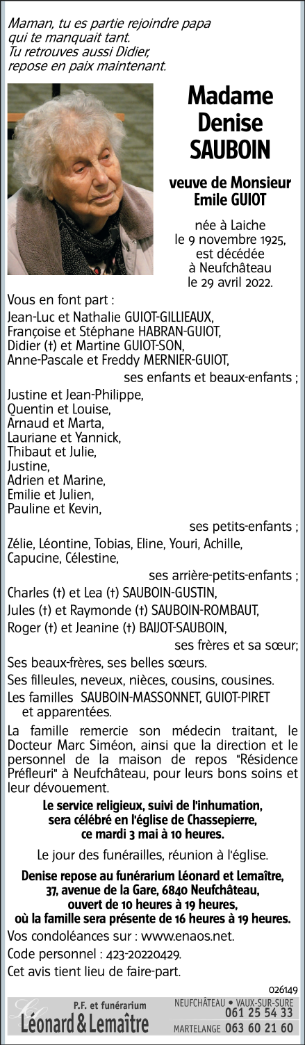 Madame Denise SAUBOIN