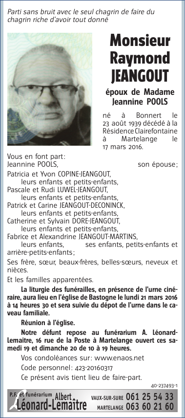 Monsieur Raymond JEANGOUT