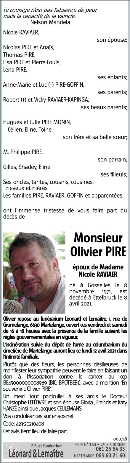 Décédé à Ettelbruck (Luxembourg) le jeudi 8 avril 2021 à l'âge de 49 ans