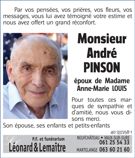 Décédé à Libramont-Chevigny (6800) le vendredi 10 avril 2020 à l'âge de 87 ans