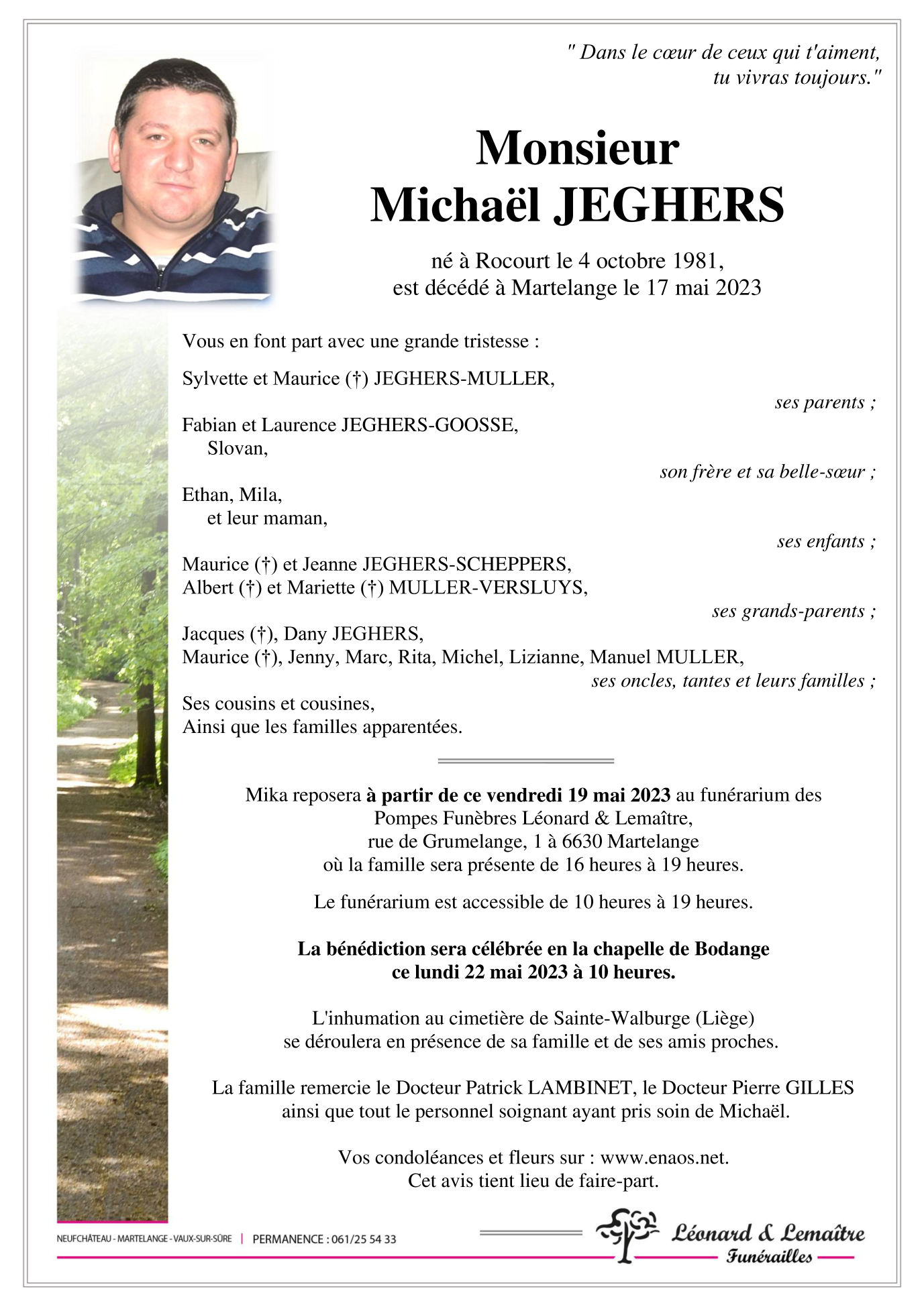 Décédé à Martelange (6630) le mercredi 17 mai 2023 à l'âge de 41 ans