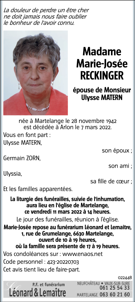 Madame Marie-Josée RECKINGER