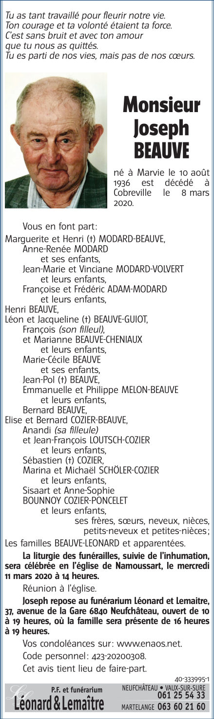 Monsieur Joseph BEAUVE