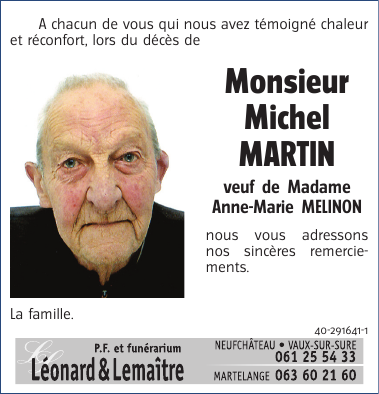 Veuf de Madame Anne-Marie MELINON
