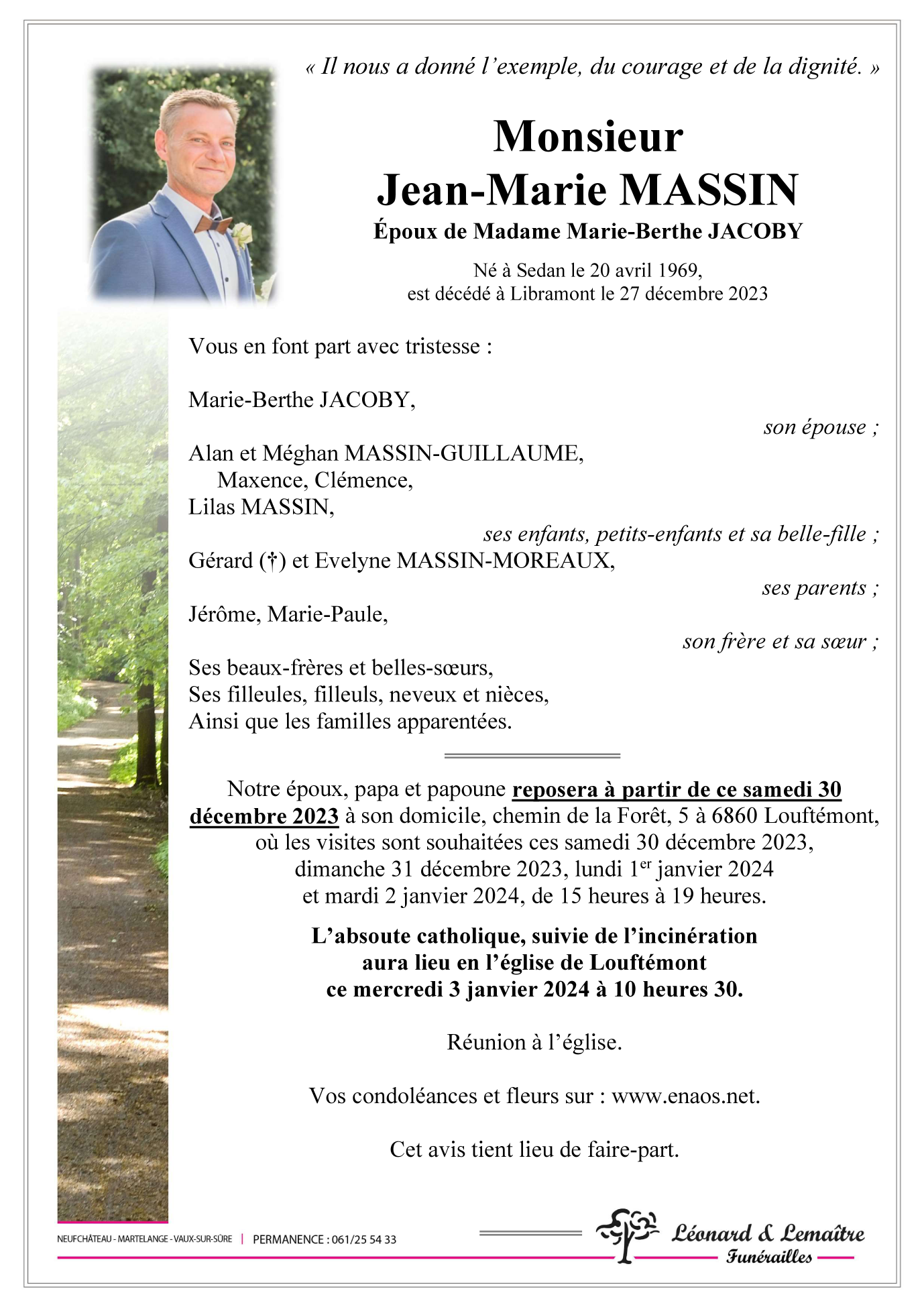 Décédé à Libramont-Chevigny (6800) le mercredi 27 décembre 2023 à l'âge de 54 ans