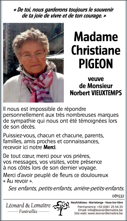 Veuve de Monsieur Norbert VIEUXTEMPS
