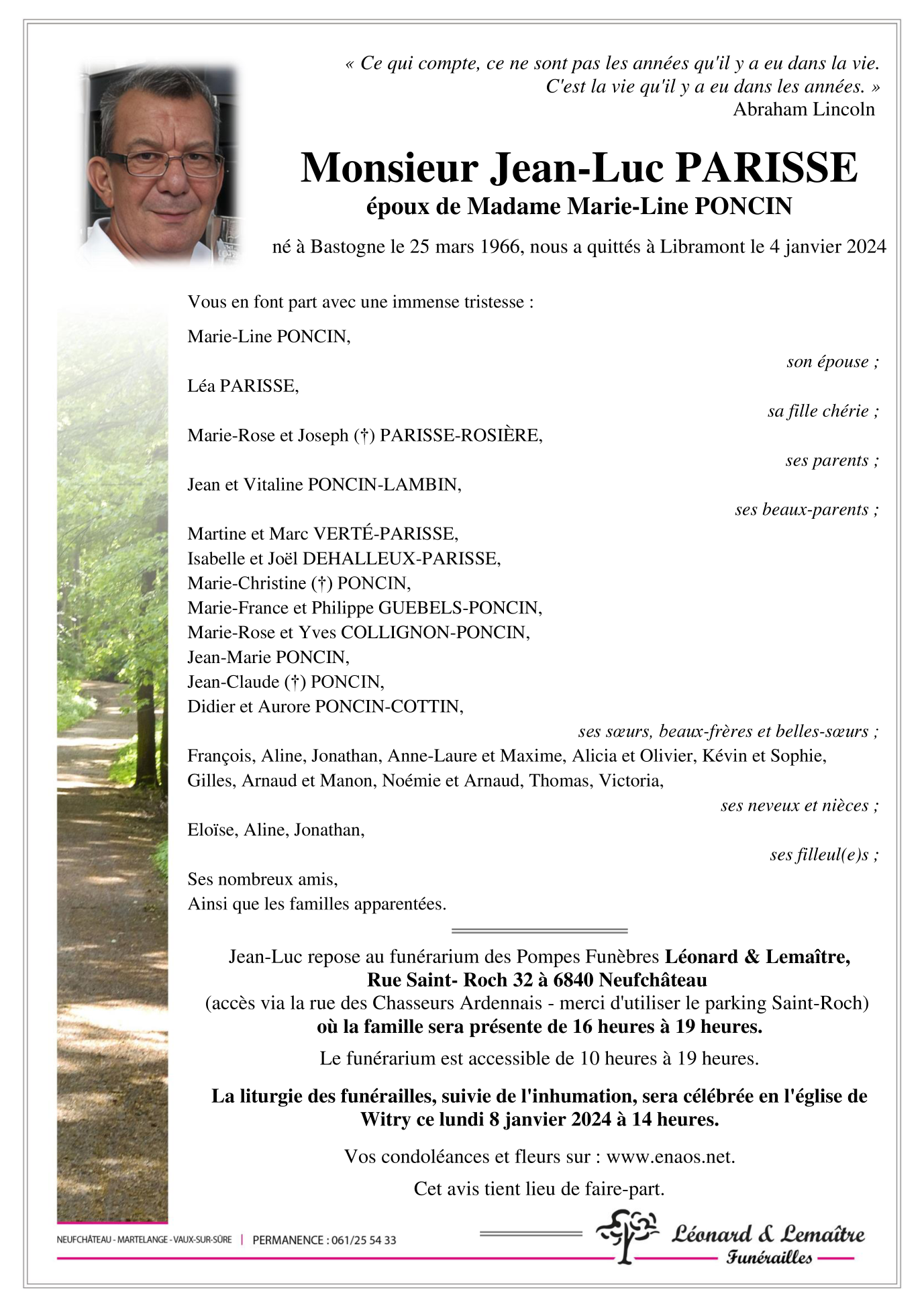 Décédé à Libramont-Chevigny (6800) le jeudi 4 janvier 2024 à l'âge de 57 ans