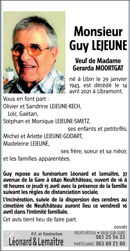 Décédé à Libramont-Chevigny (6800) le mercredi 14 avril 2021 à l'âge de 78 ans