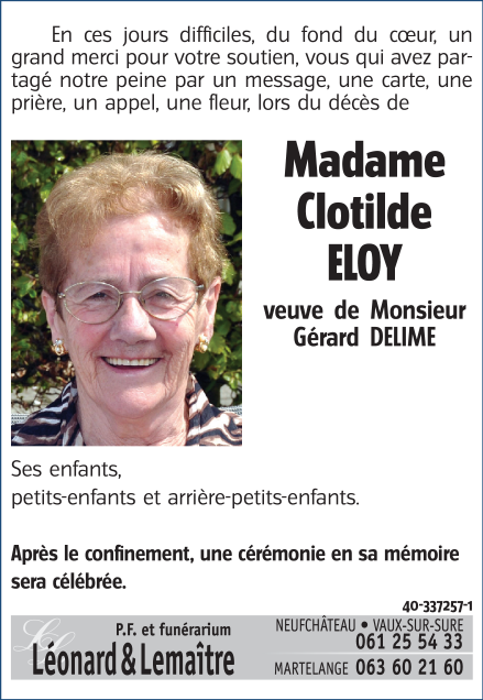Veuve de Monsieur Gérard DELIME