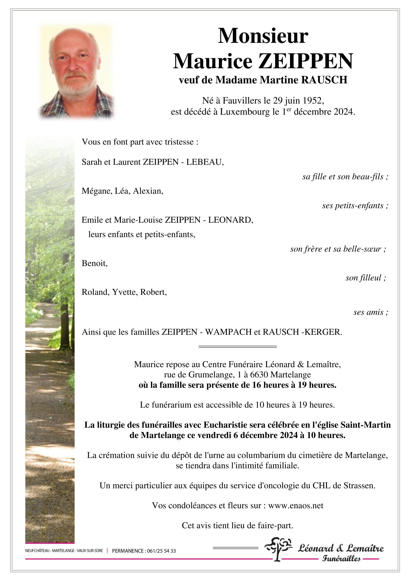 Décédé à Luxembourg/Strassen  (2555, Luxembourg) le dimanche 1 décembre 2024 à l'âge de 72 ans
