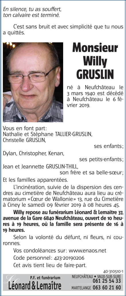 Monsieur Willy GRUSLIN
