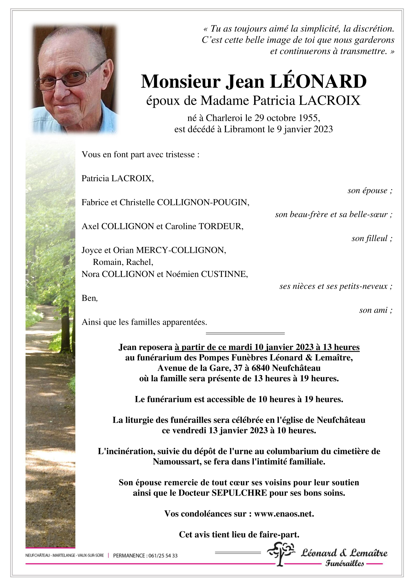 Décédé à Libramont-Chevigny (6800) le lundi 9 janvier 2023 à l'âge de 67 ans