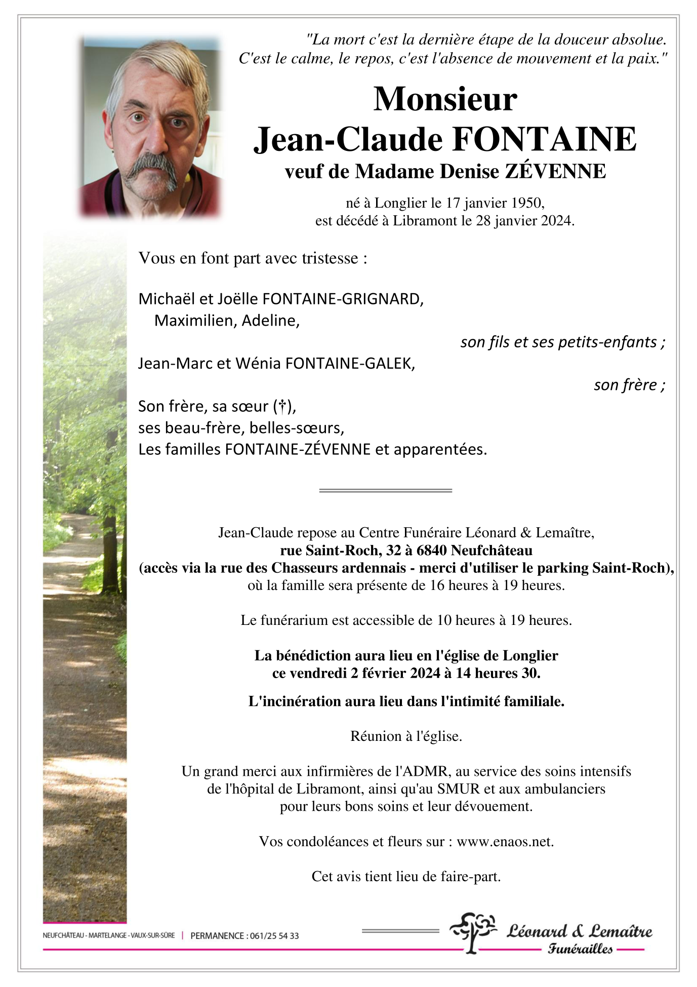 Décédé à Libramont-Chevigny (6800) le dimanche 28 janvier 2024 à l'âge de 74 ans