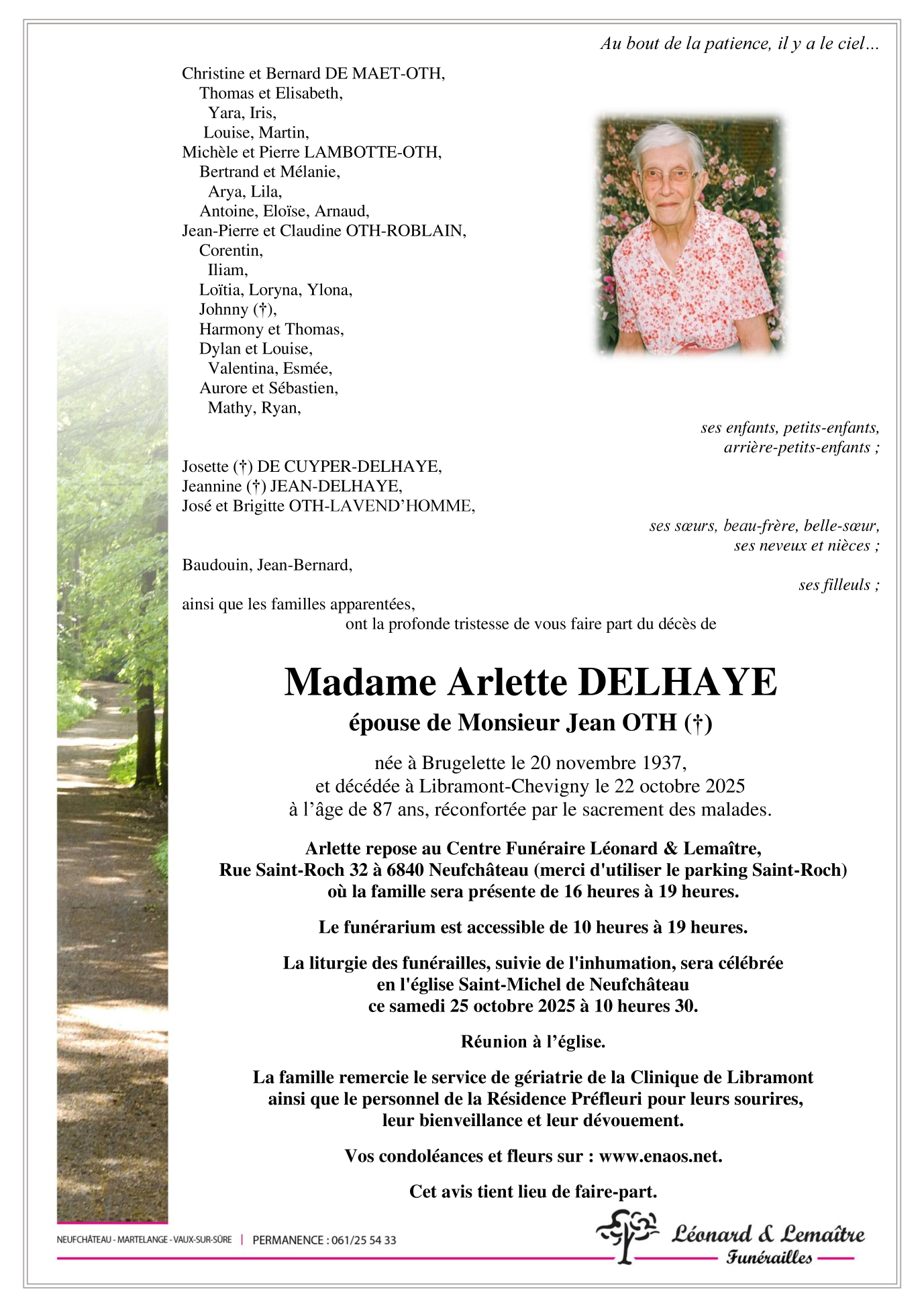 Décédée à Libramont-Chevigny (6800) le mercredi 22 octobre 2025 à l'âge de 87 ans